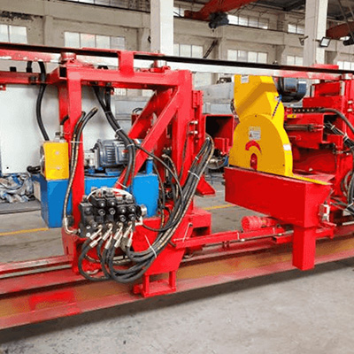 雙牽引機由鋼結構件、移動槽輪、牽引頭、牽引頭擺動機構、自動夾料機構等組合而成,該牽引機包含P1P2兩個牽引頭,當P1牽引頭牽引料時,P2牽引頭快速返回到前限初出臺處待料,當P1牽引頭牽引到位時,P2牽引頭自動夾料牽引,自動中斷鋸處于工作狀態,P1牽引頭自動松料后返回,如此反復以上工作狀態,實現自動功能。