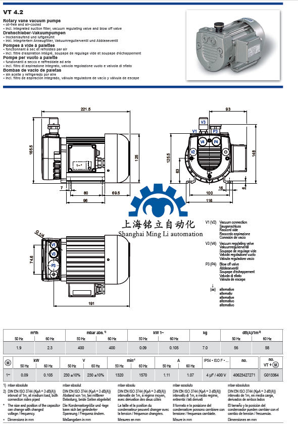 Becker SV8.190/2-01 98m3/h 320mbar 2.0kw ,50HZ230-400V±10%