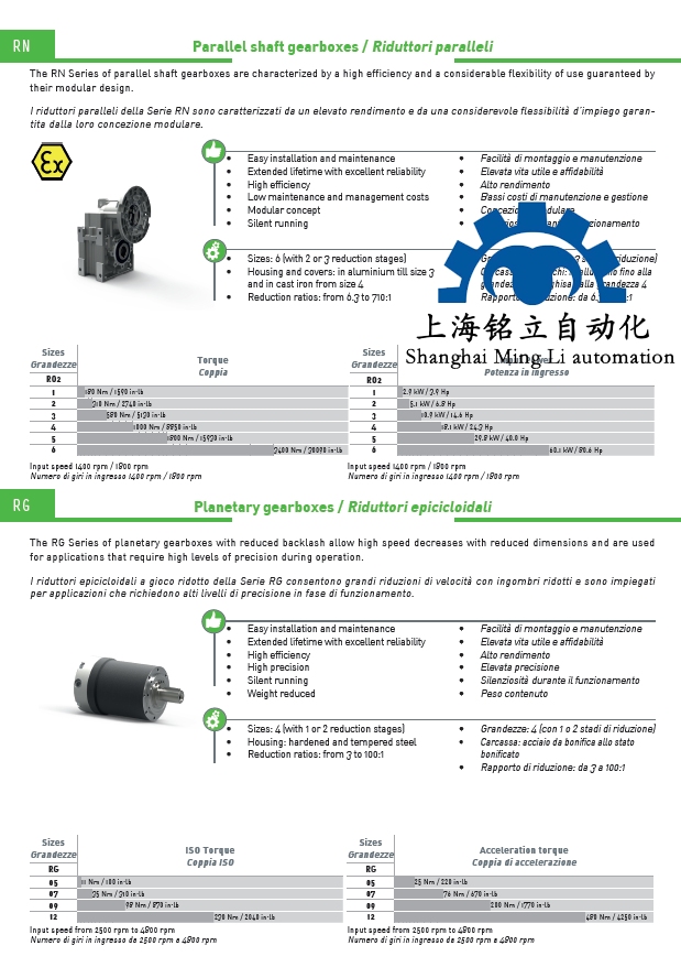 意大利VARVEL SpA誕生于1955年,自公司成立以來,一直從事減速機與變速器的研發與生產,產品有螺旋齒輪箱,蝸輪蝸桿減速機,螺旋減速機,行星減速機及機械式變速器等產品。VARVEL成立之初,位于博洛尼亞市中心,60年中期為了擴大生產,搬至博洛尼亞市郊,經過80年代的一波高速增長后,2000年,公司再次遷到占地約30000平米的Crespellano。 平行軸螺旋齒輪減速電機型號有RV,RO,RN,電機機功0.18-22KW,轉速6.3-315,蝸輪蝸桿減速機型號有RS, RT,RA等,功率0.18-15KW,轉速7-100,螺旋減速機型號有RD, RC, XA,功率0.18-22KW,轉速2.3-630,行星減速機型號有RG系列,變速機型號有VR,VS系列。