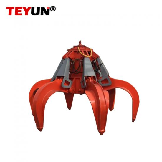 The grab is used for lifting the scrap metal or other building rubbish.Hydraulic excavator orange peel grab